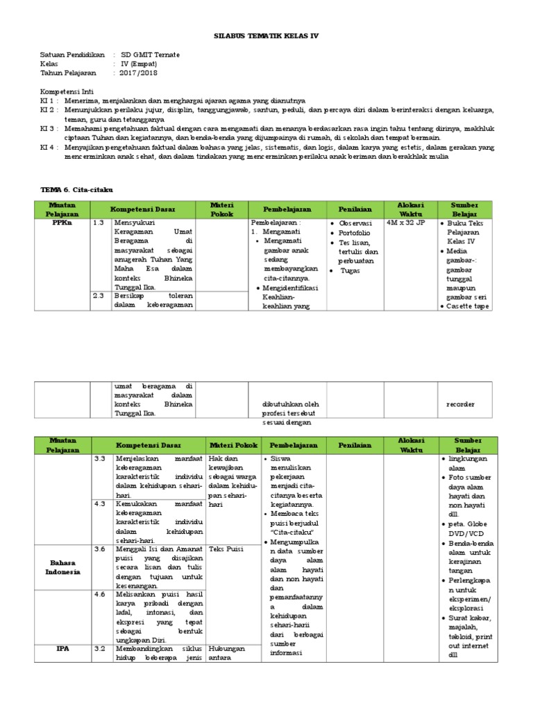 Silabus kelas iv sd kurikulum 2013 revisi 2016. Silabus kelas iv tema 6 : Silabus kelas 4 tema 6.doc. Indahnya negeriku sekolah dasar dan madrasah ibtidaiyah kementerian pendidikan dan kebudayaan tahun 2012. Silabus kelas 4 tema 6.doc.